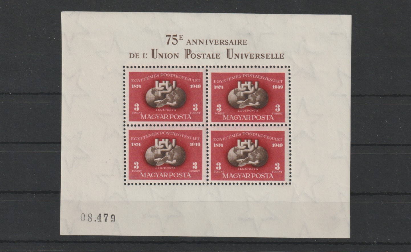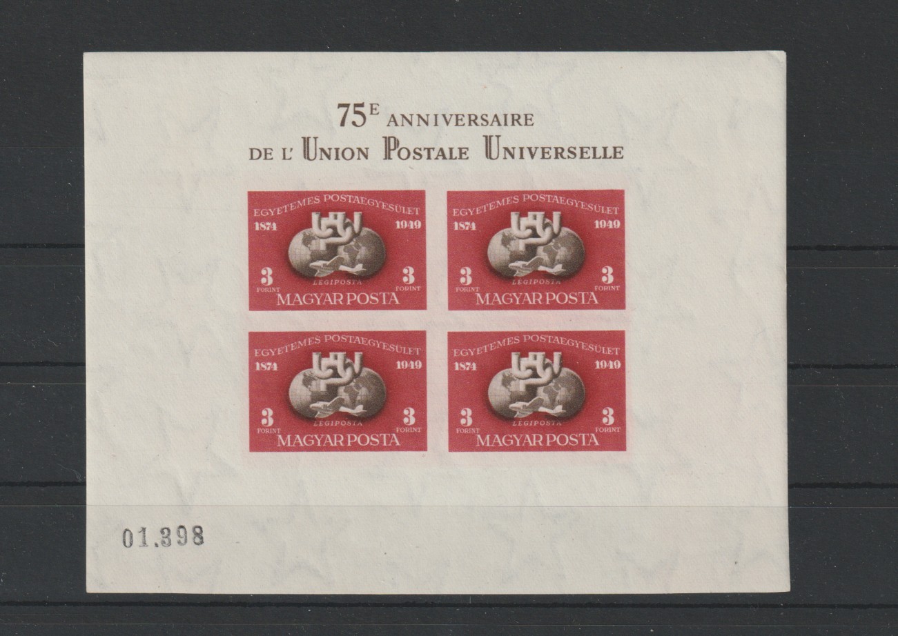 1950. UPU B blokk (**) a sorszám vaknyomatával