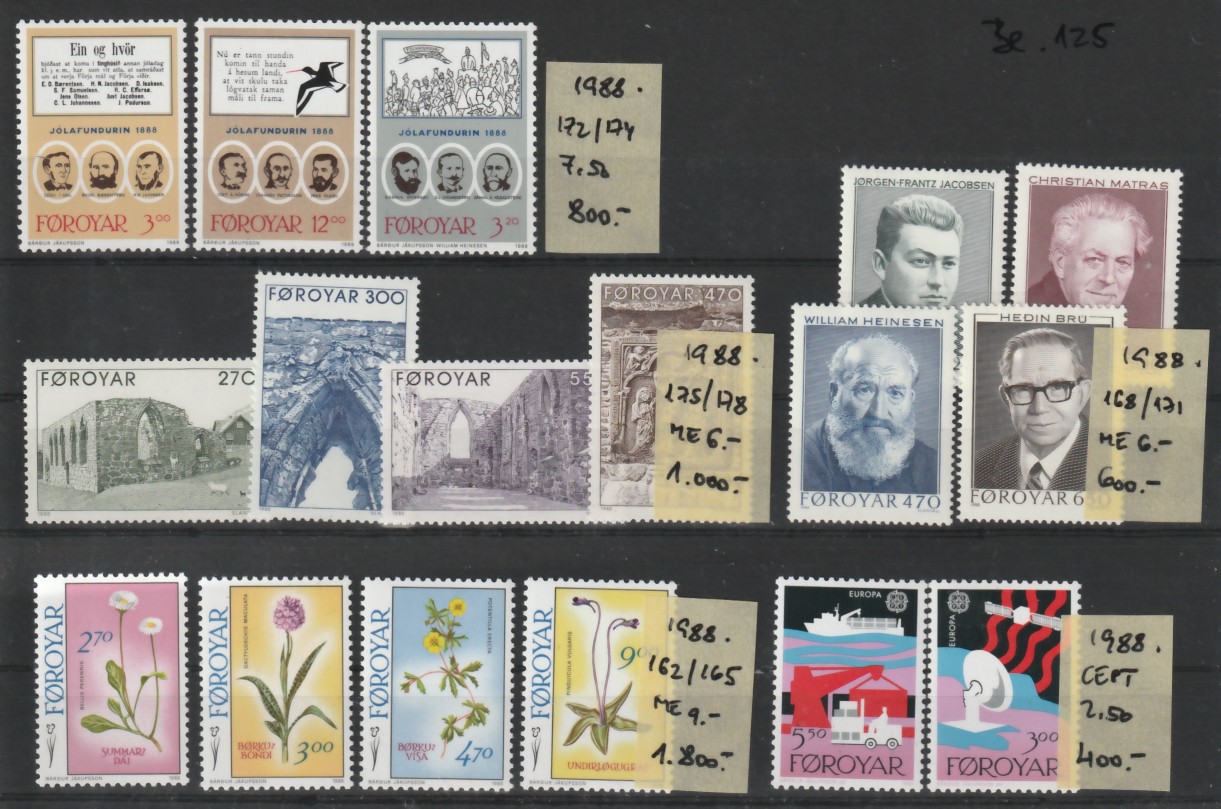 1988 FAROER Mi 172/174 (**) ME 7,50 ára: 800,-HUF