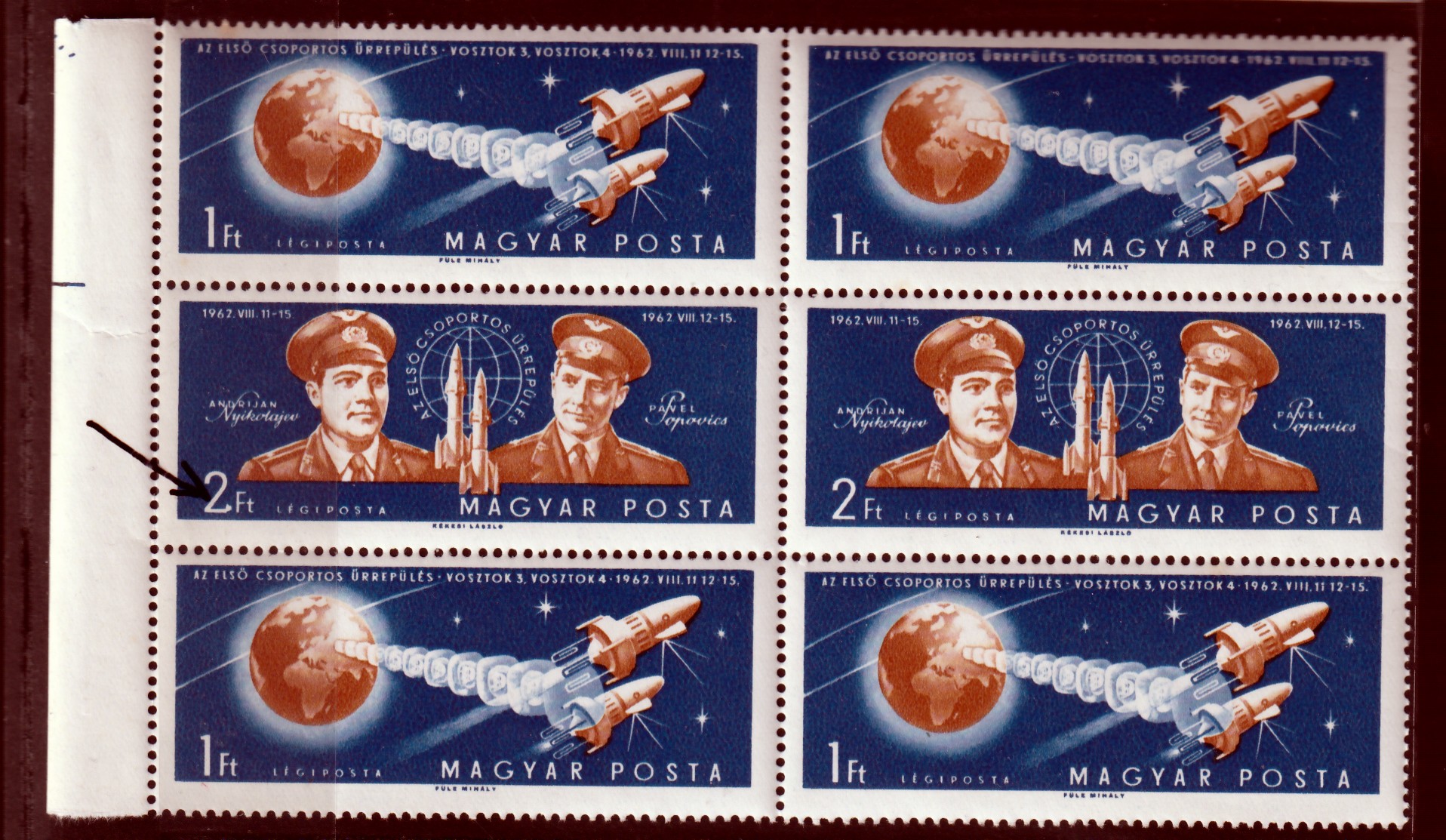 a hibás ívek 3. és 4. bélyegén 20.000,-HUF